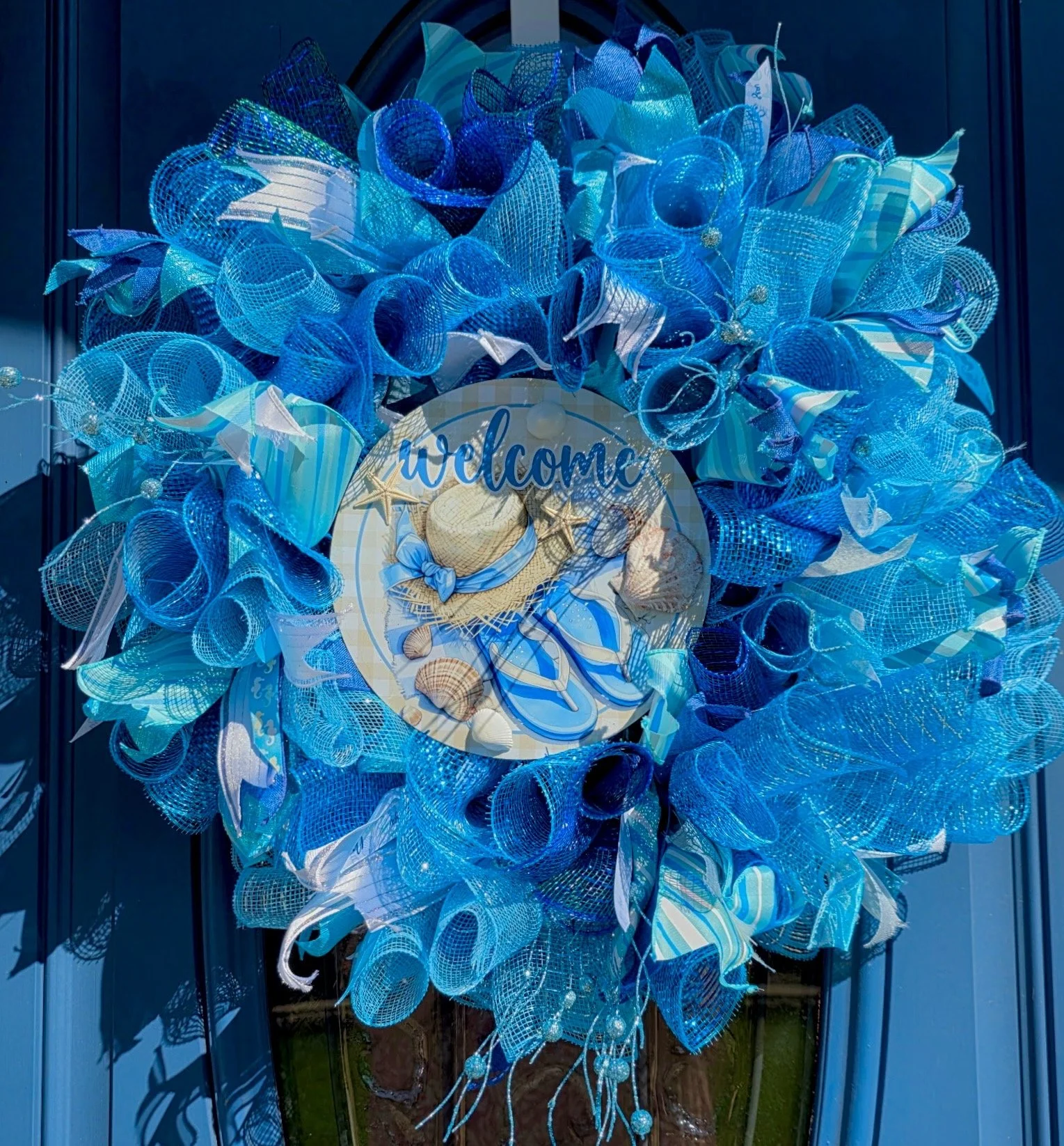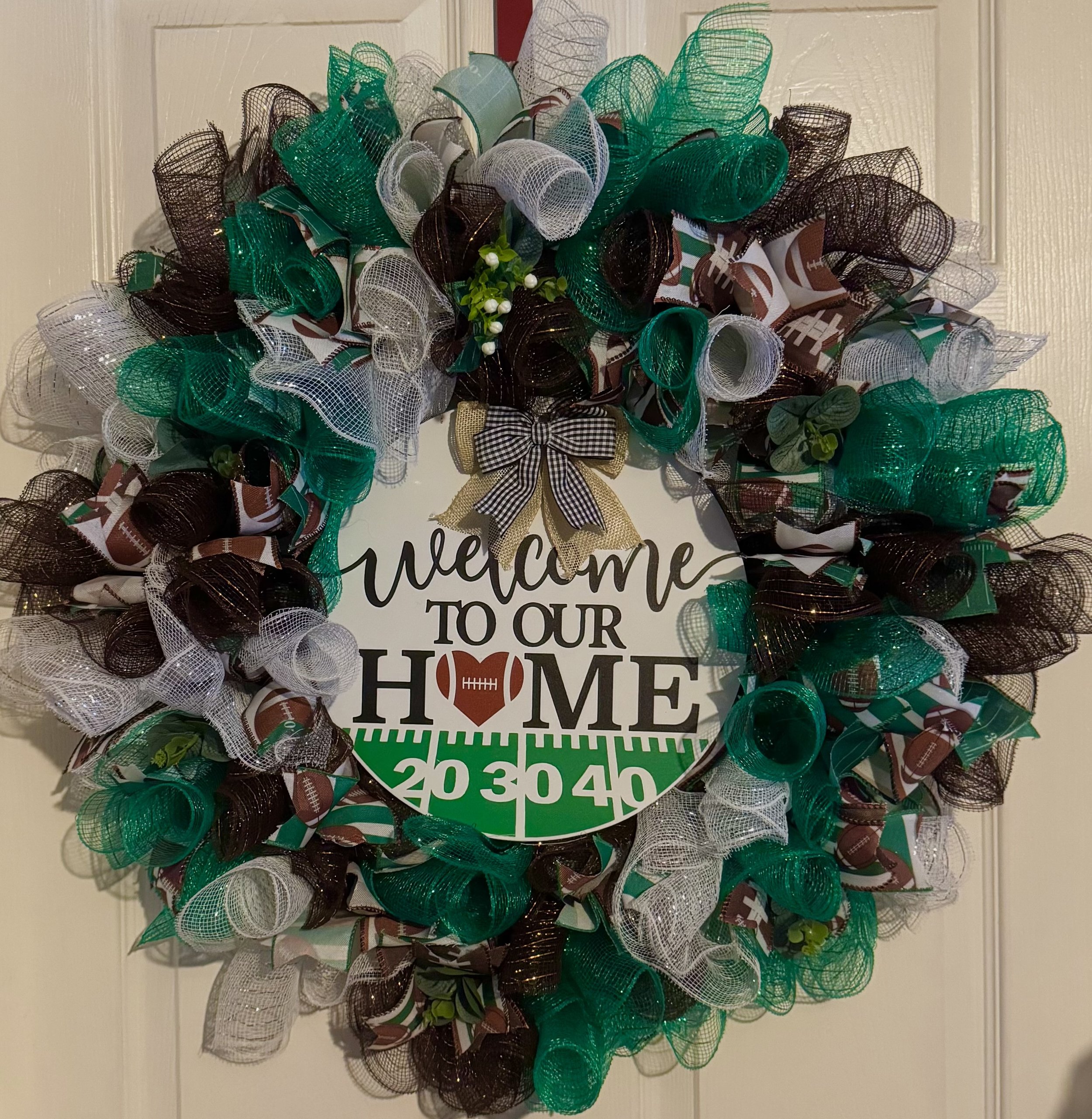 The larger custom wreath is a 14 inch wreath, more of the standard wreath. These can be customized to any color, theme, signage, and more. If this is the option you are looking for, use the “Contact Me” feature to send me a message and we can carefully curate the perfect wreath for you. Price will range from $45-$75 depending on the extremity of the detail.