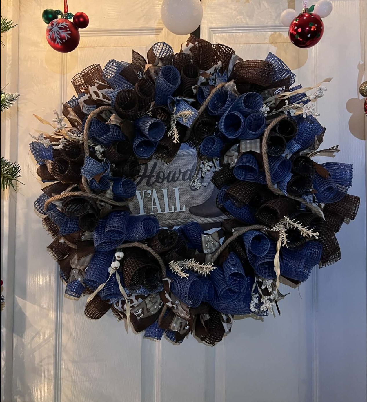 The mini custom wreath is a 10 inch wreath that can be customized to any color and theme of your choosing. The price ranges from $25-$35 depending on the detail, use the “Contact Me” feature to send inquiries!